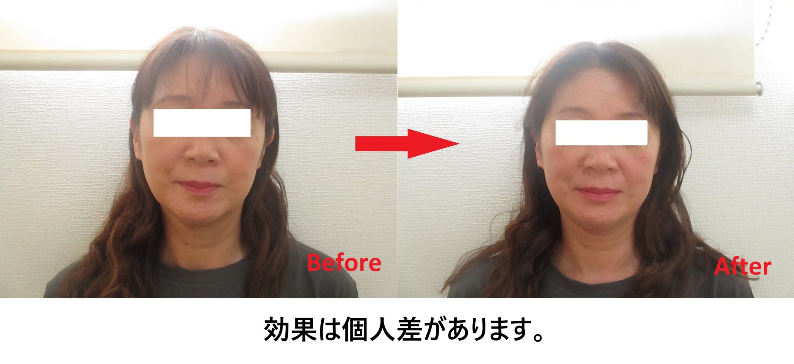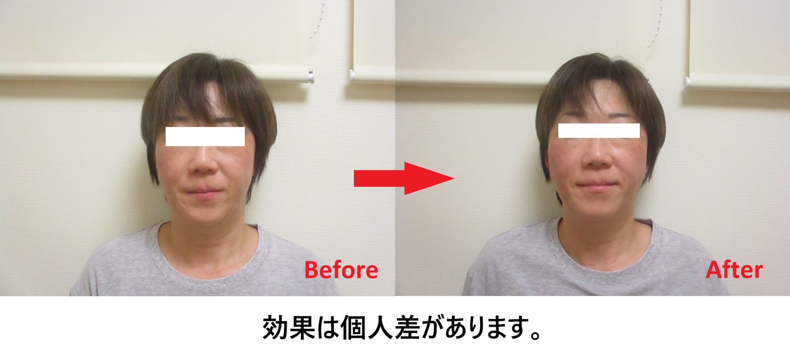 2回目Afterでは、更に少しだけ、頬の中心の膨らみが上に上がり、小顔がより自然に浸透した感じになっています。1回目のBeforeと2回目Afterを比べて頂ければと思います。