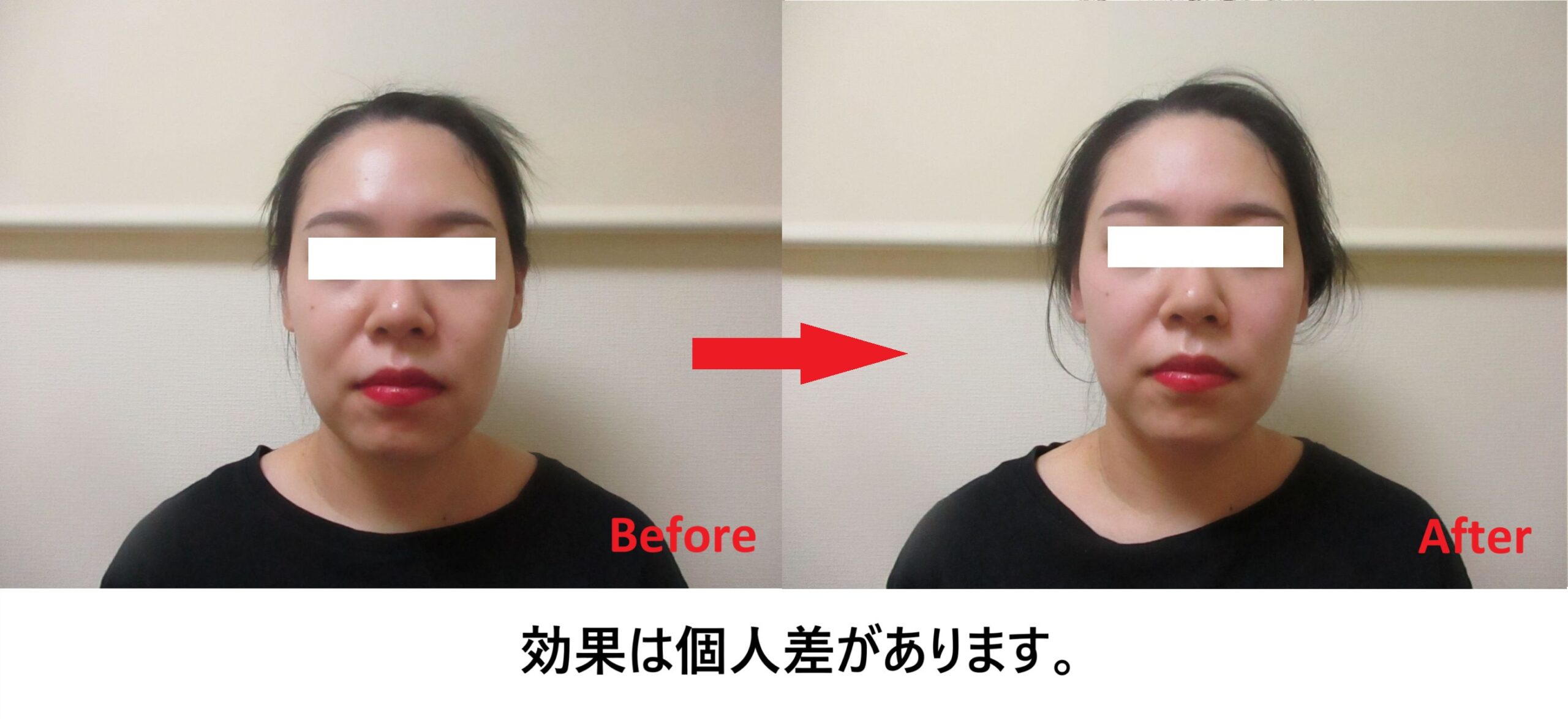 2週間経過しましたが、一回目のAfterでは、頬の中心の膨らみが上がり、2回目のBeforeでは、1回目の頬の中心の膨らみが上に上がったまま、維持出来ています。それに伴って顎付近がスッキリとし、顔のむくみも、それほどない良い状態を維持出来ています。